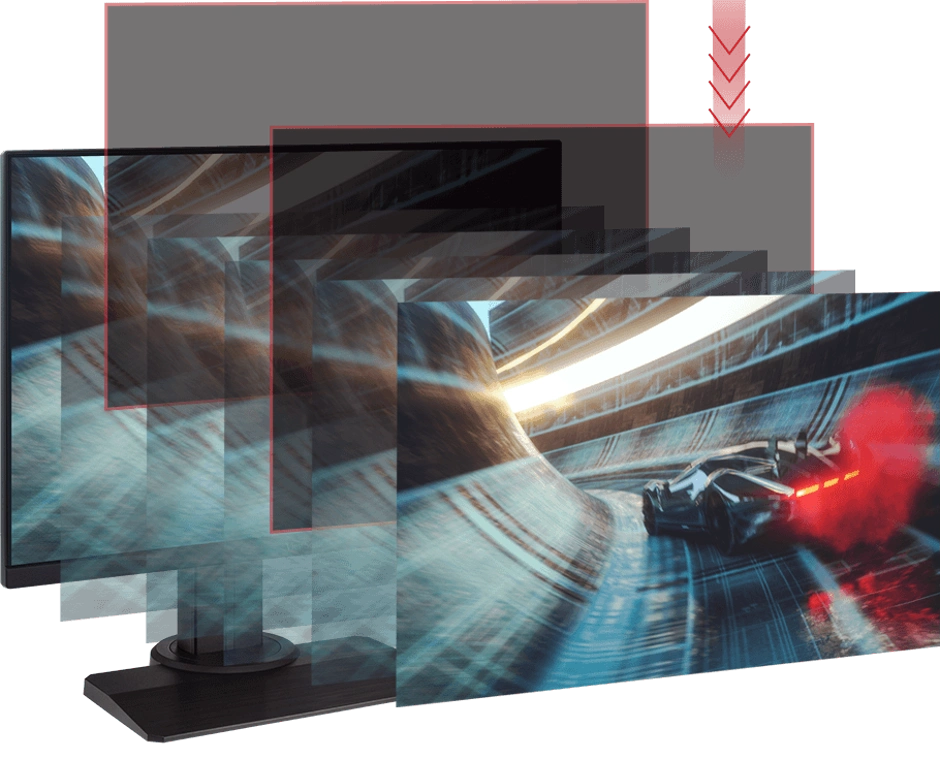 Mỗi phần nghìn giây đều được đếm và thời gian phản hồi nhanh 1ms (MPRT) giúp giảm thiểu hiện tượng nhòe chuyển động và bóng mờ để bạn có thể phản ứng chính xác.