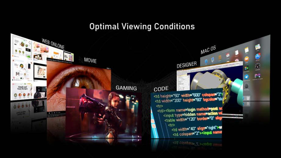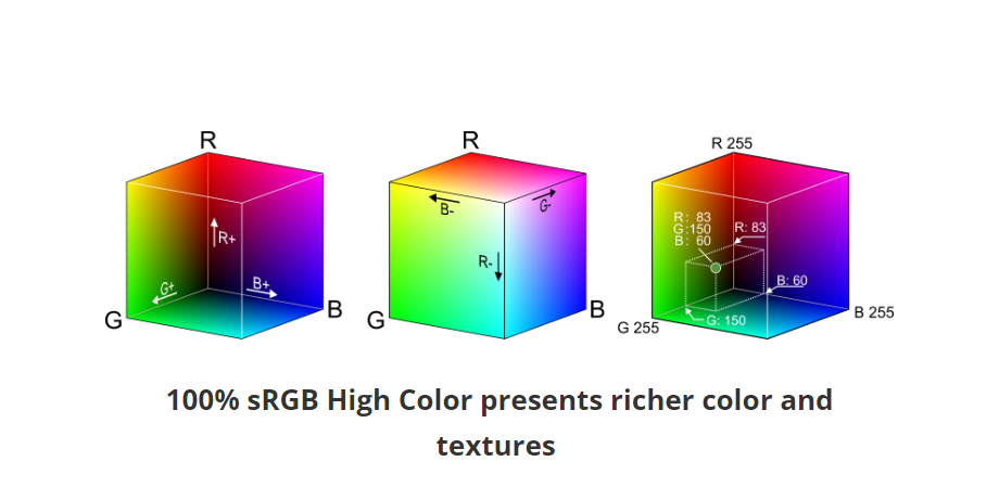 VG series Gaming được trang bị độ bao phủ màu dải màu sRGB, thể hiện màu sắc và kết cấu phong phú hơn. Độ bao phủ màu lớn cũng là một trong những điều kiện tiên quyết để một chiếc màn hình có thể cho lại trải nghiệm tốt khi chơi game và cug cấp một “không gian màu” đủ lớn khi làm việc. Với màn hình VG series Esport Republic Of Gaming được cường tăng màu sắc cải thiện độ chính xác của những màu mà màn hình mang lại.