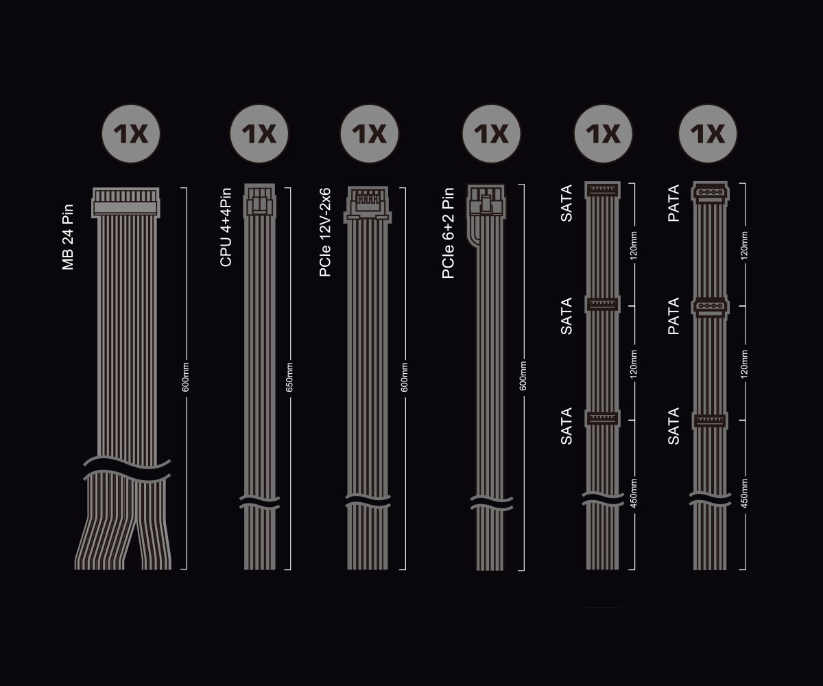 | Cáp PCIe 5.1 (12+4-pin) | 1 cổng (450W, Dual Color) |