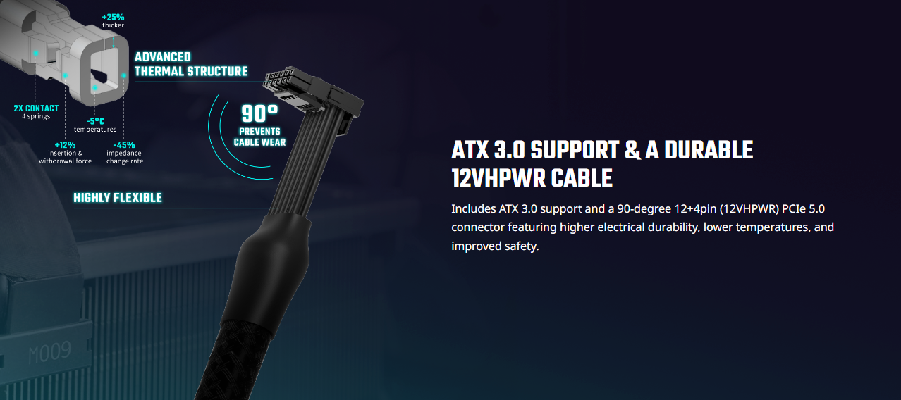 | Đấu nối | Đầu nối chân ATX 24: 1 Đầu nối chân 4 + 4 EPS : 1 Đầu nối 8 chân EPS: 1 Đầu nối SATA: 6 Đầu nối 4 chân ngoại vi: 2 Đầu nối chân PCI-e 6+2: 4 Đầu nối 12VHPWR: 1 |