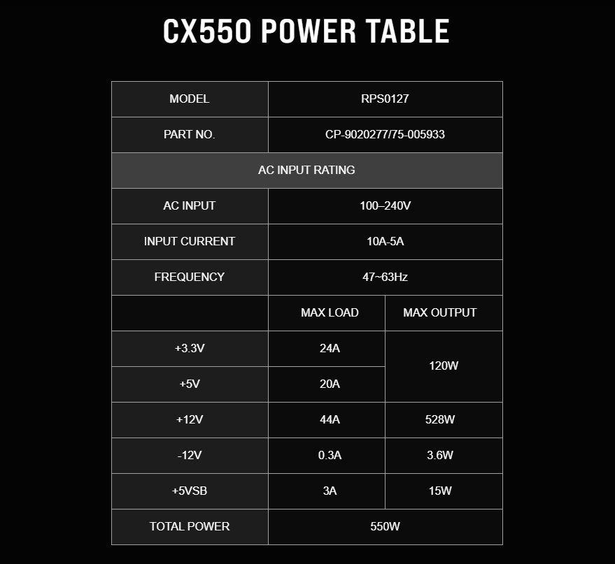 | Tên sản phẩm | Nguồn máy tính Corsair CX550 |
