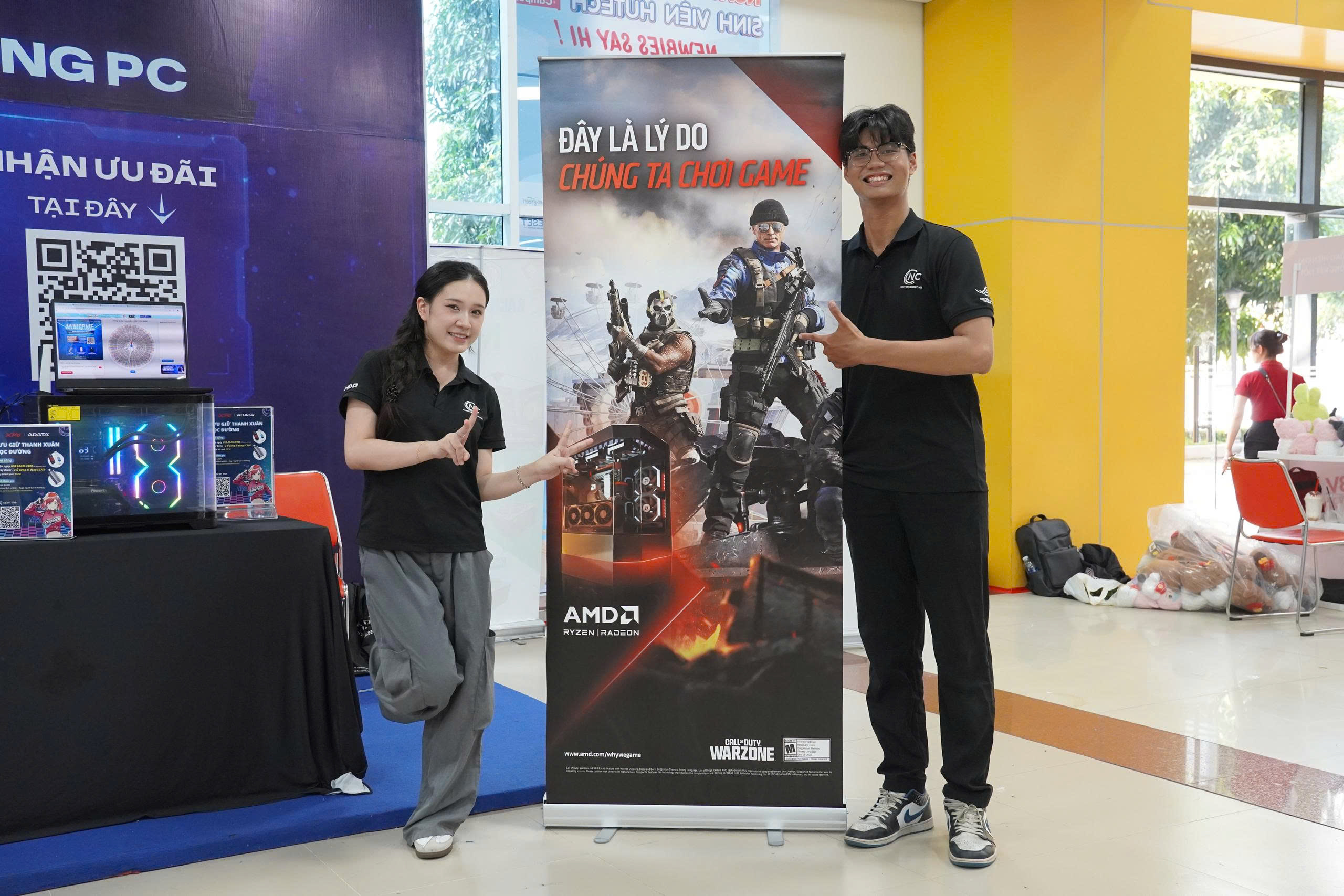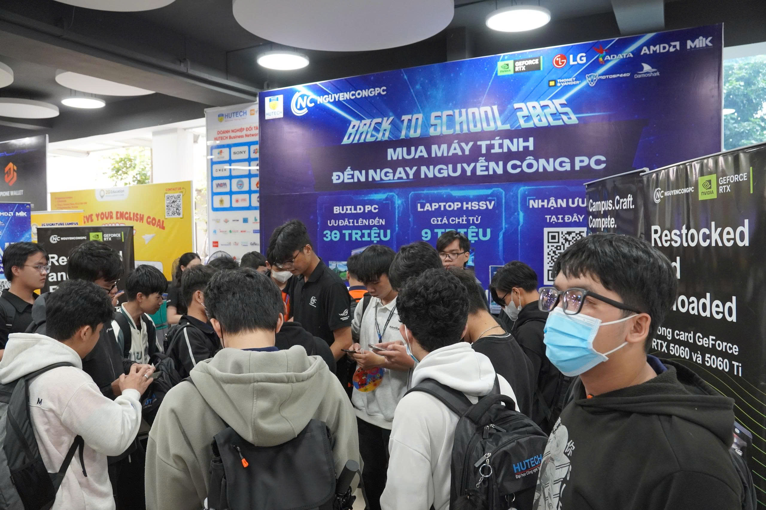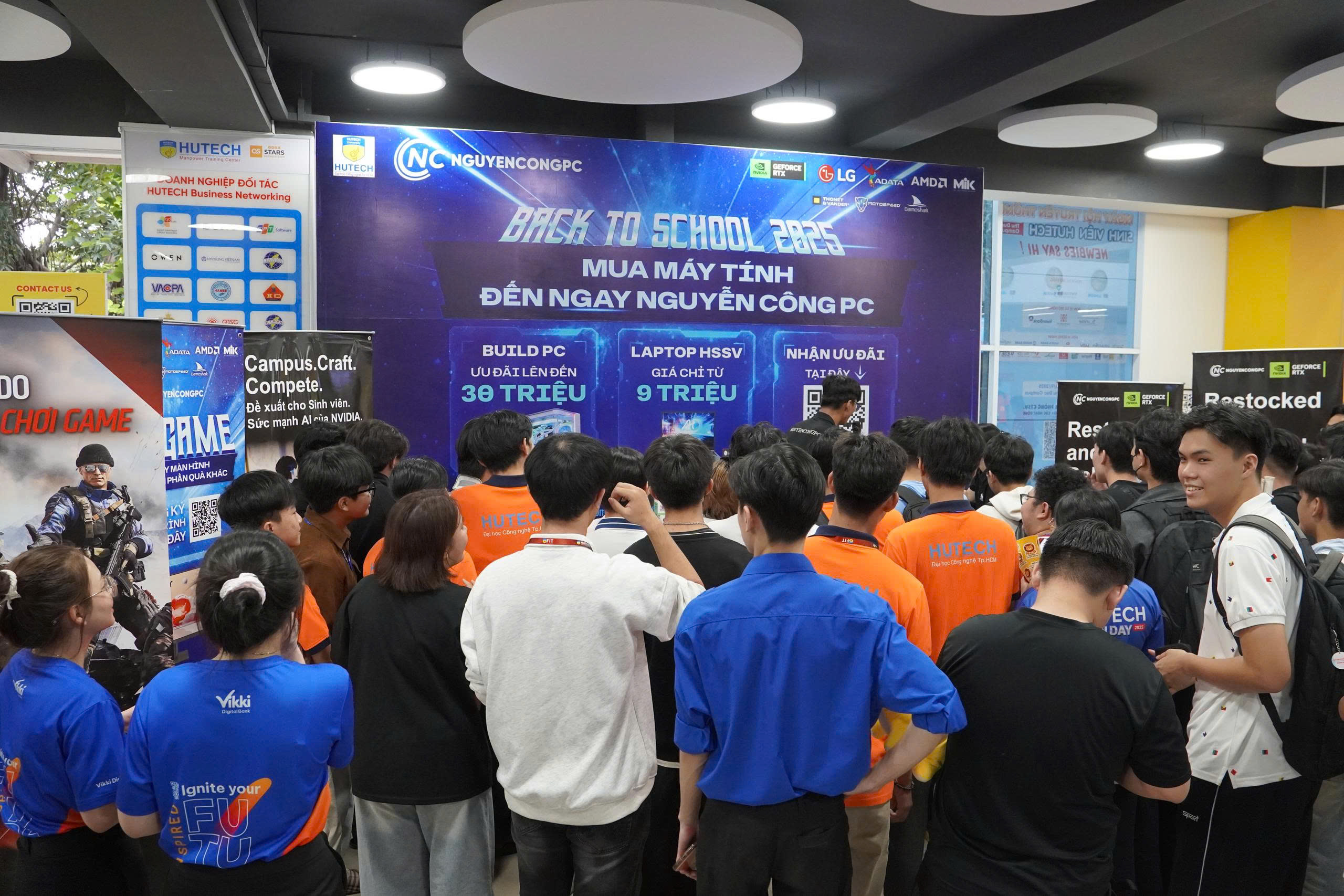 Gian hàng Nguyễn Công PC nổi bật, thu hút đông đảo sinh viên ghé thăm.