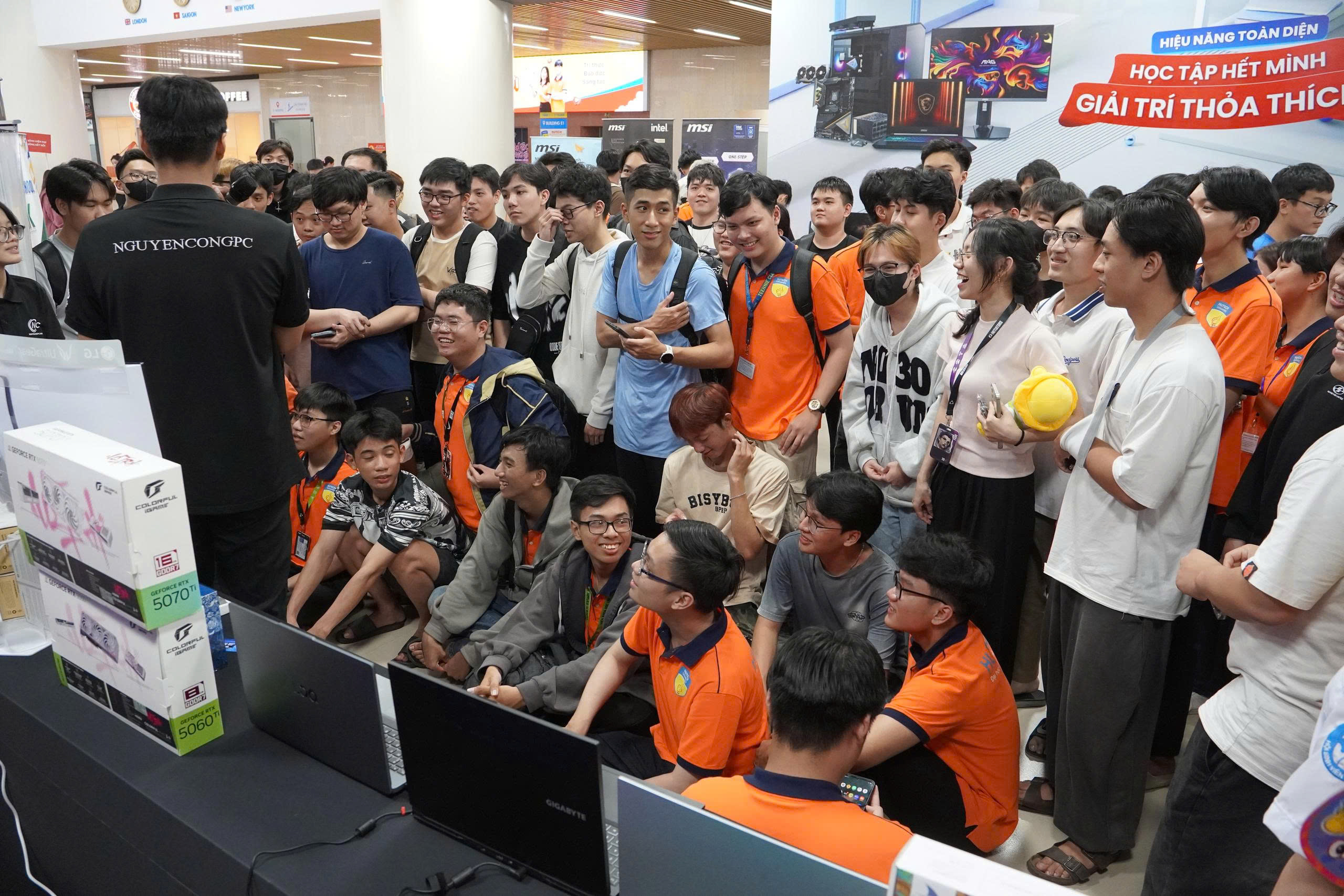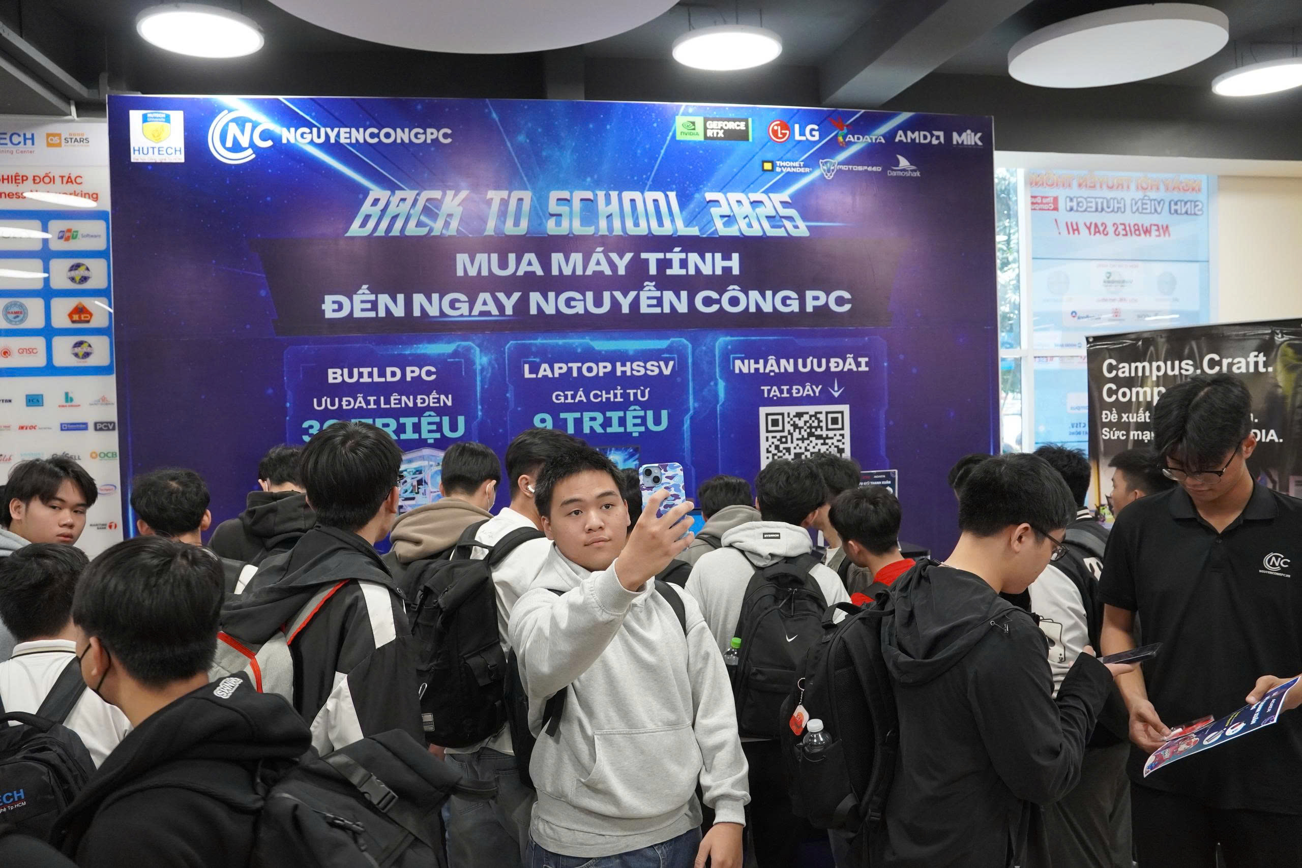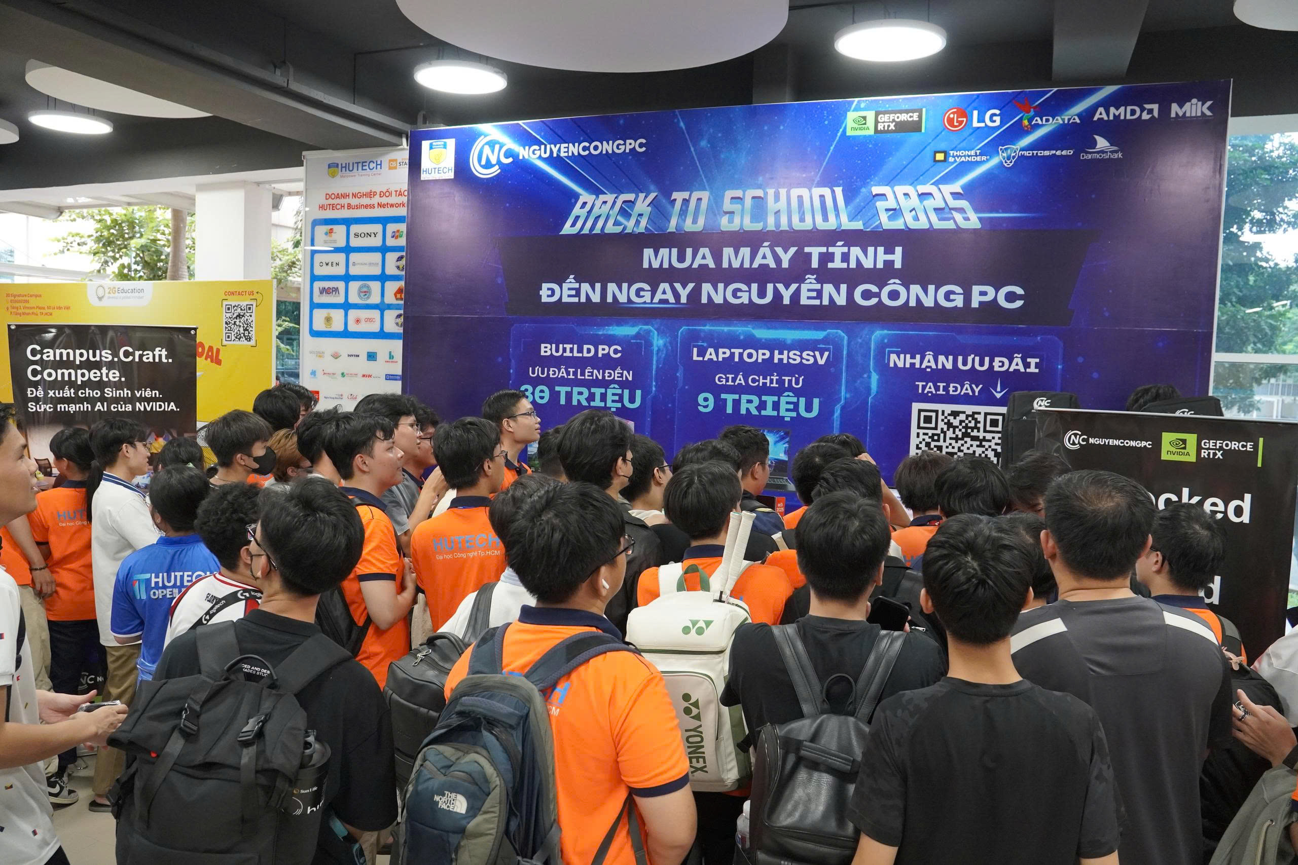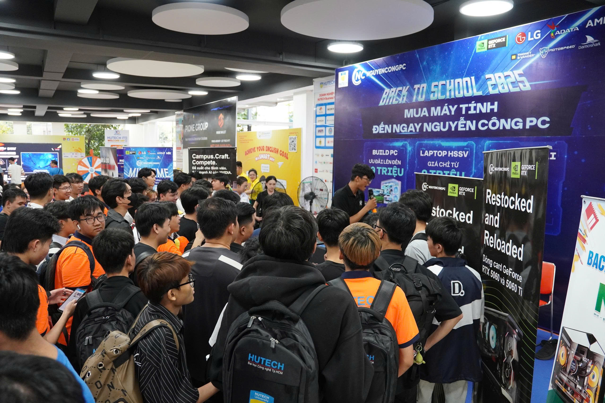 Sự kiện chào đón tân sinh viên HUTECH IT Welcome Day 2025 vừa qua đã diễn ra thành công rực rỡ vào ngày Thứ Năm, 02/10/2025, tại Sảnh E1 - HUTECH Thủ Đức Campus. Với vai trò là nhà tài trợ và đồng hành xuyên suốt cùng sự kiện chào tân sinh viên của Trường Đại học Công nghệ TP.HCM (HUTECH), Nguyễn Công PC đã mang đến một gian hàng công nghệ vô cùng hấp dẫn, thu hút sự quan tâm và tham gia trải nghiệm sôi nổi của đông đảo các bạn tân sinh viên khối ngành Công nghệ Thông tin.