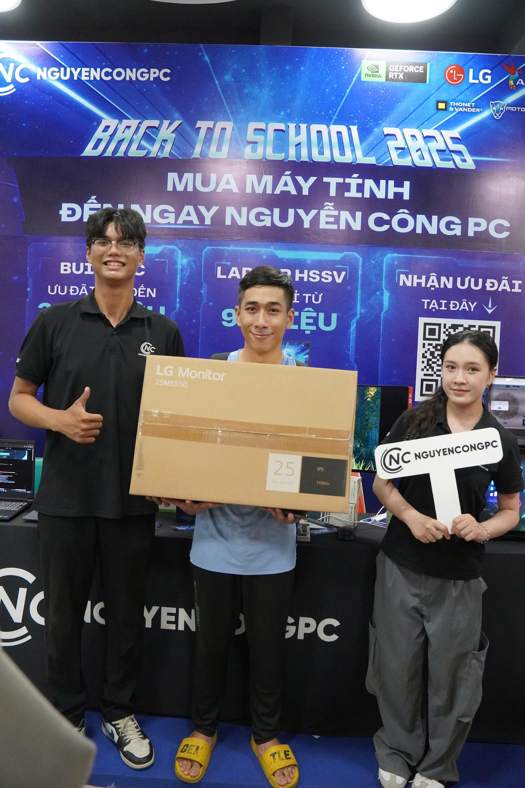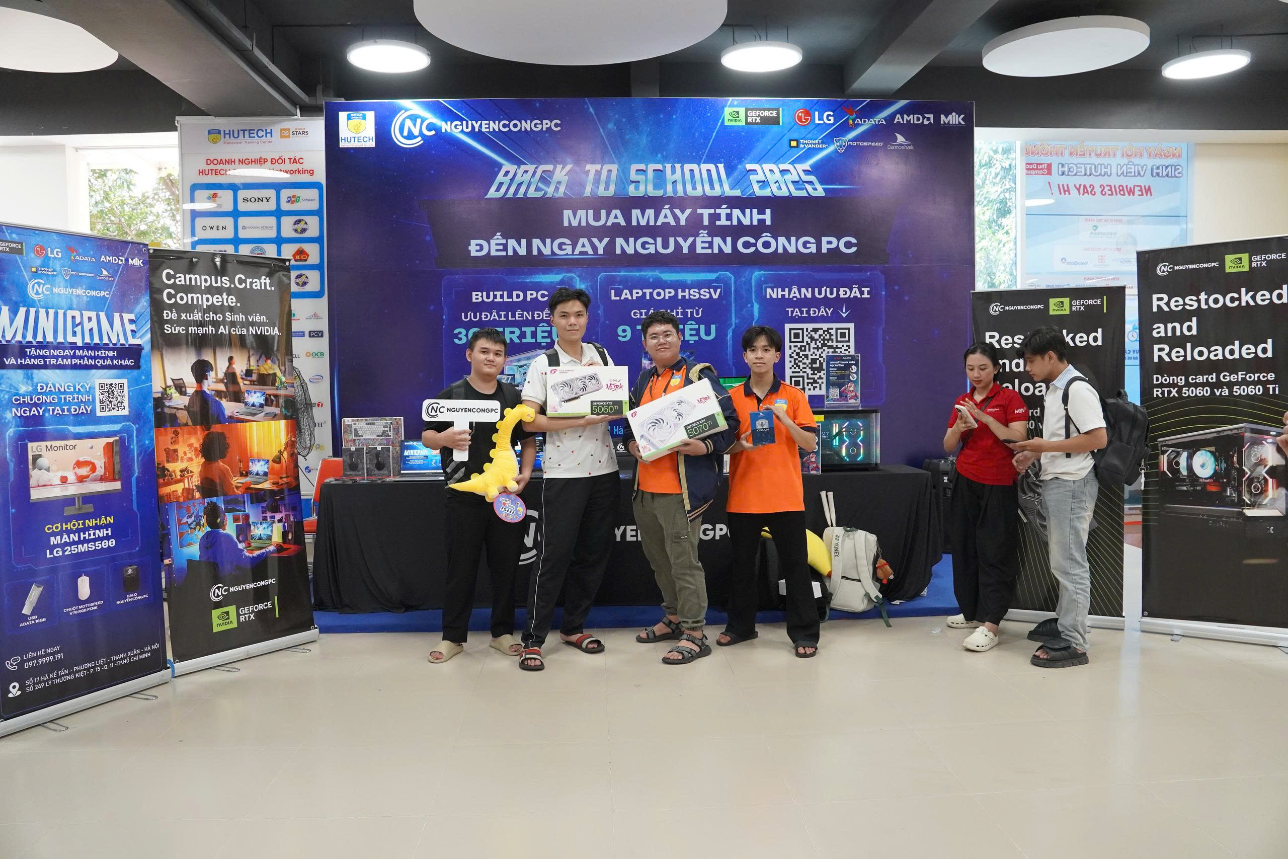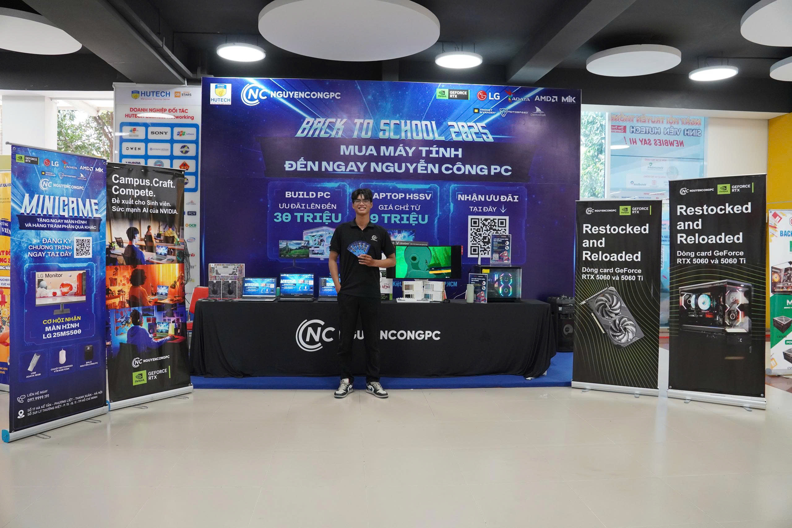 Vừa qua, Nguyễn Công PC đã cùng HUTECH - Đại học Công nghệ Tp.HCM tạo nên một ngày hội công nghệ khó quên cho các tân sinh viên IT tại sự kiện HUTECH IT Welcome Day 2025. Gian hàng của Nguyễn Công PC trở thành tâm điểm với khu vực trải nghiệm công nghệ hiện đại, nơi sinh viên được tận tay khám phá các sản phẩm đến từ các hãng lớn như LG, Motospeed, ADATA, DARMOSHARK... Đặc biệt, hoạt động minigame sôi động với cơ hội trúng Màn hình LG 25MS500 đã thu hút hàng trăm sinh viên tham gia, khẳng định vai trò là nhà tài trợ và đồng hành xuyên suốt cùng nhà trường.