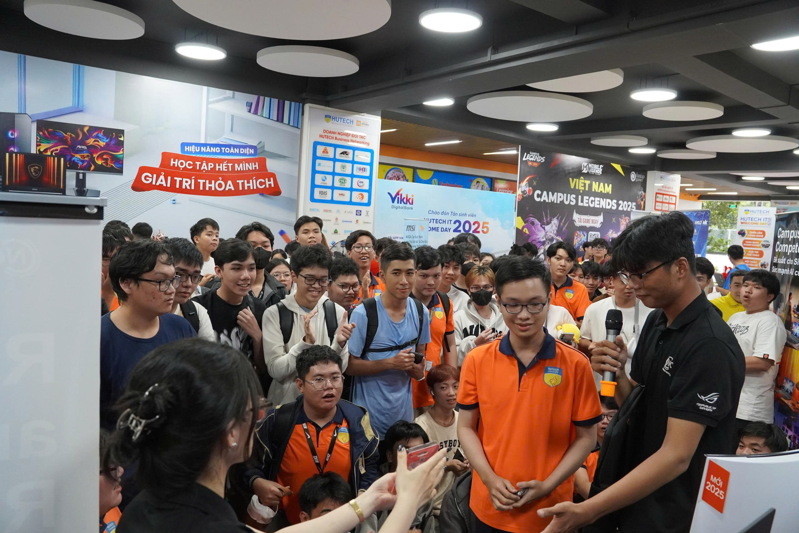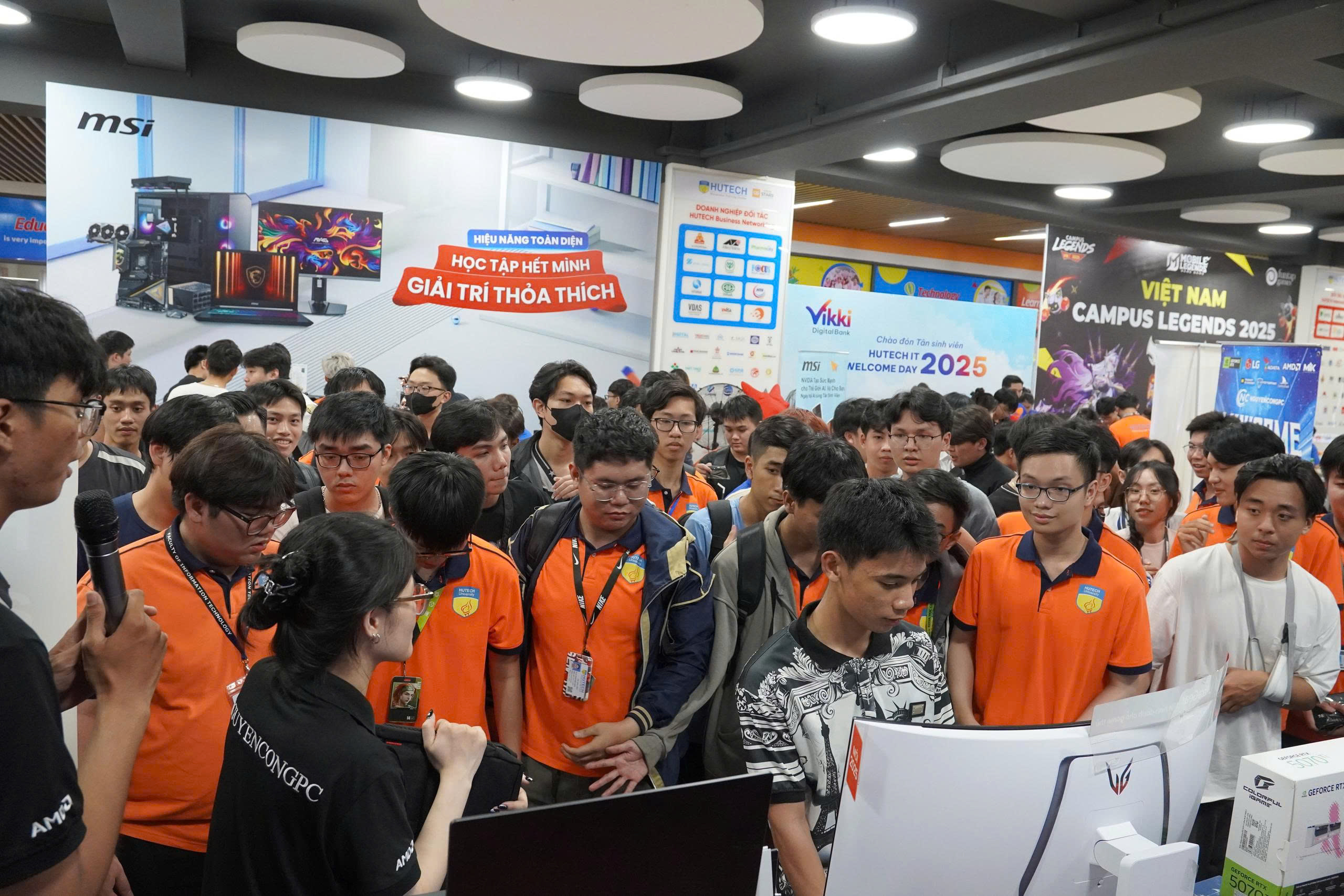 Không khí náo nhiệt tại ngày hội công nghệ chào đón tân sinh viên IT.