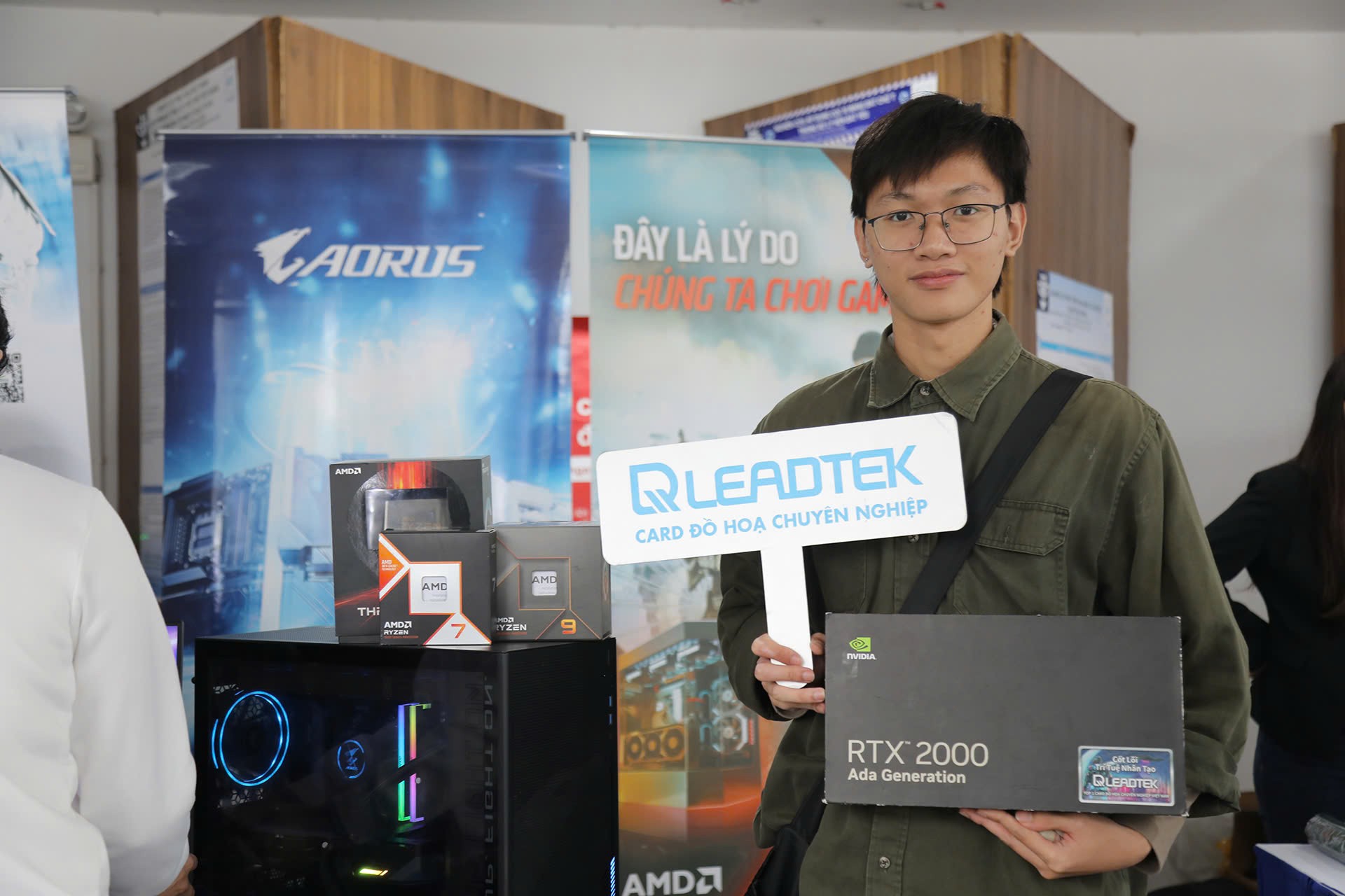 Tại sự kiện, sinh viên đã có cơ hội trực tiếp trải nghiệm sức mạnh của những bộ máy tính đồ họa chuyên nghiệp, được lắp ráp từ các linh kiện mới nhất và chất lượng nhất đến từ các thương hiệu đối tác lớn: