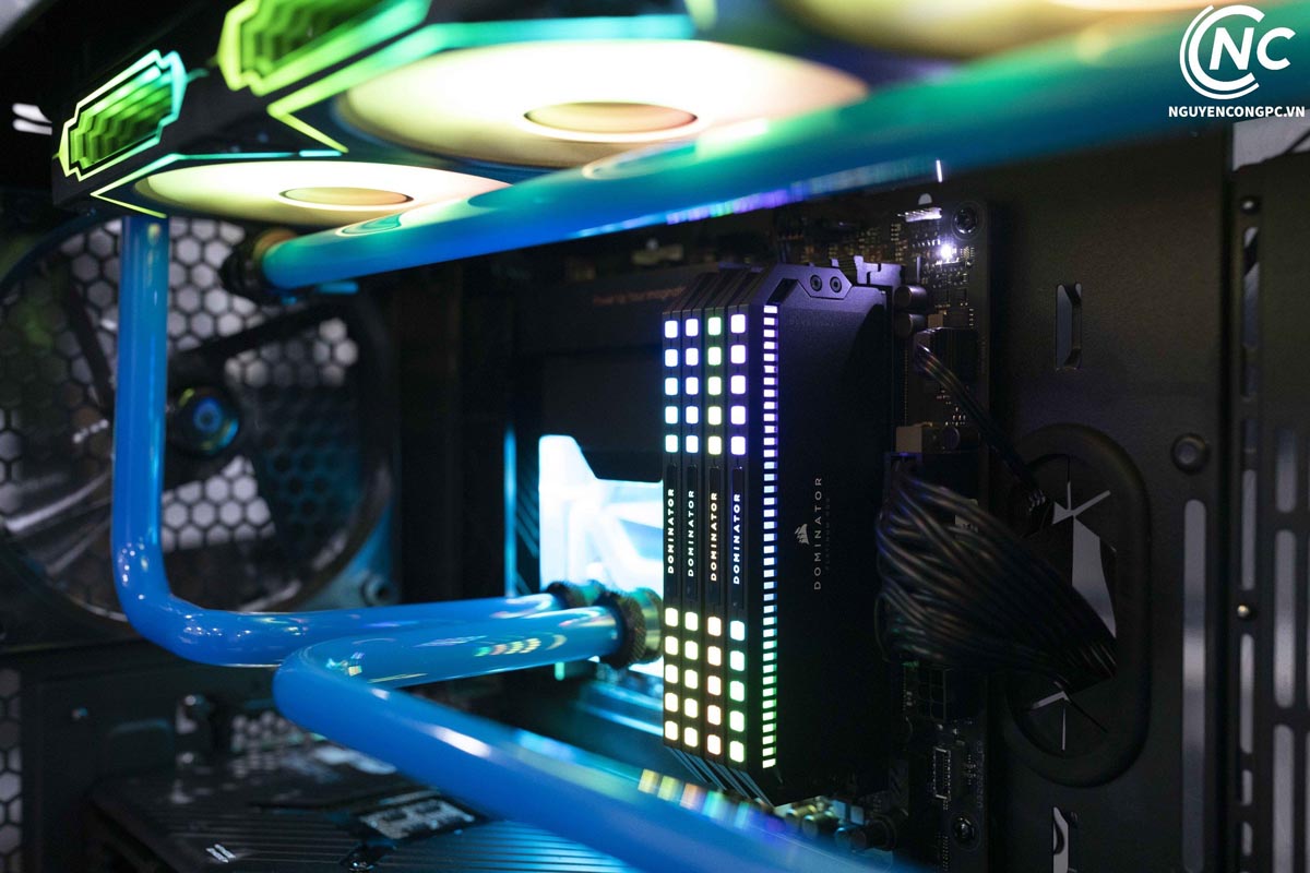 Với thiết kế tinh xảo và chất liệu cao cấp, hệ thống này không chỉ đảm bảo hiệu suất làm mát tối ưu, giúp máy hoạt động ổn định ở mức hiệu suất cao nhất mà còn mang lại vẻ đẹp thẩm mỹ vượt trội. Nguyễn Công PC đã tinh chỉnh từng chi tiết để đảm bảo nhiệt độ của CPU và GPU luôn ở mức lý tưởng, giúp kéo dài tuổi thọ linh kiện và mang đến trải nghiệm sử dụng mượt mà, không bị gián đoạn.