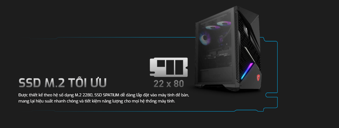 Từ vũ trụ MSI mang đến khả năng lưu trữ với tốc độ nhanh chóng và hiệu suất đáng kinh ngạc. Đưa hệ thống của bạn lên một tầm cao mới với SPATIUM.