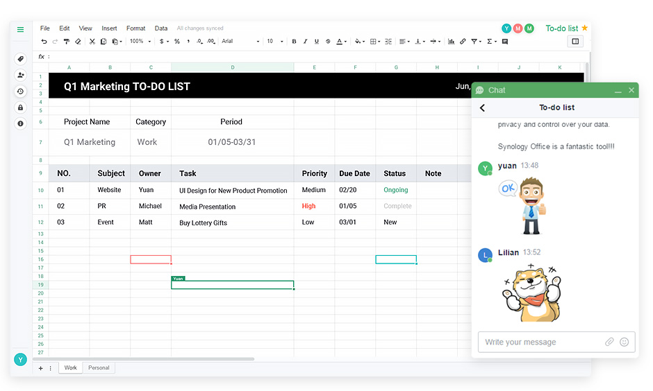 Synology Office là một gói cộng tác kết hợp sự tiện lợi và khả năng sử dụng của các đám mây công cộng với quyền riêng tư và bảo mật dữ liệu được đảm bảo bởi các đám mây riêng. Nó cho phép bạn làm việc liền mạch với nhau trên các tài liệu và bảng tính trong một môi trường được bảo vệ.
