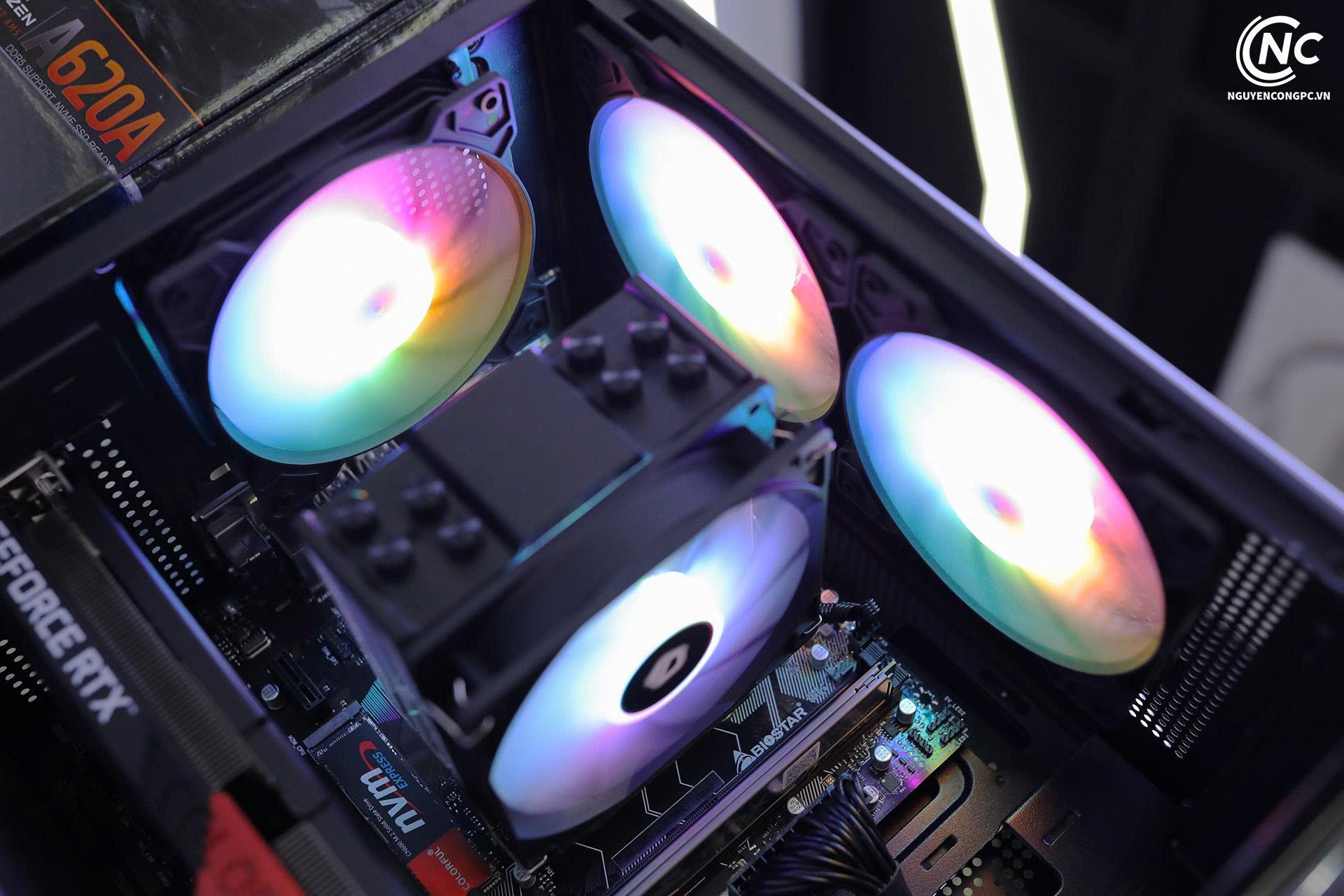 Quạt hoạt động êm ái và hiệu quả trong việc giảm nhiệt độ CPU, giúp duy trì hiệu suất ổn định khi thực hiện các tác vụ nặng. Hệ thống đèn RGB slow-mo hiển thị dạng pixel điểm ảnh cũng là một điểm độc đáo của bộ tản nhiệt này, giúp tạo điểm nhấn cá nhân hóa cho hệ thống máy tính của người dùng.