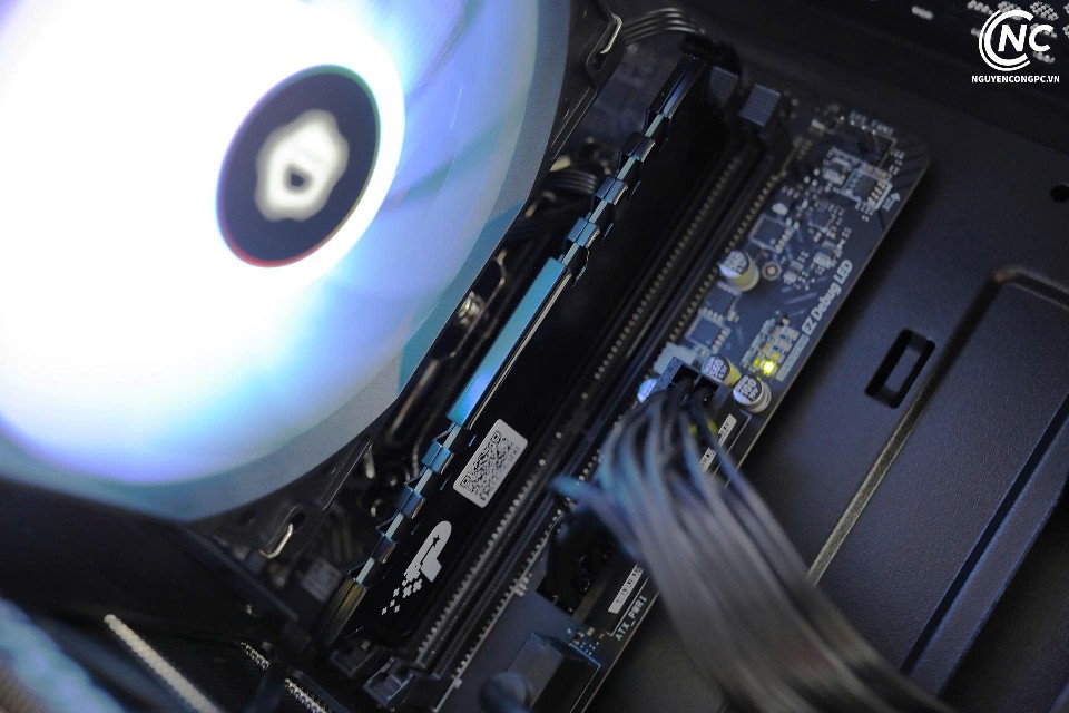 Để đảm bảo dòng chảy dữ liệu không bị tắc nghẽn, bộ máy được trang bị 16GB RAM Patriot Signature Premium với tốc độ bus 3200Mhz. Mức dung lượng này là "chìa khóa" giúp hệ thống giải quyết trơn tru các tác vụ đa nhiệm nặng, cho phép bạn mở hàng loạt tab làm việc cùng lúc với các phần mềm đồ họa như Adobe Premiere hay After Effects mà không gặp hiện tượng giật lag. Lớp tản nhiệt nhôm cao cấp không chỉ giúp RAM vận hành mát mẻ trong suốt nhiều giờ hoạt động liên tục mà còn tăng thêm tính thẩm mỹ cứng cáp và đẳng cấp cho tổng thể bộ máy.