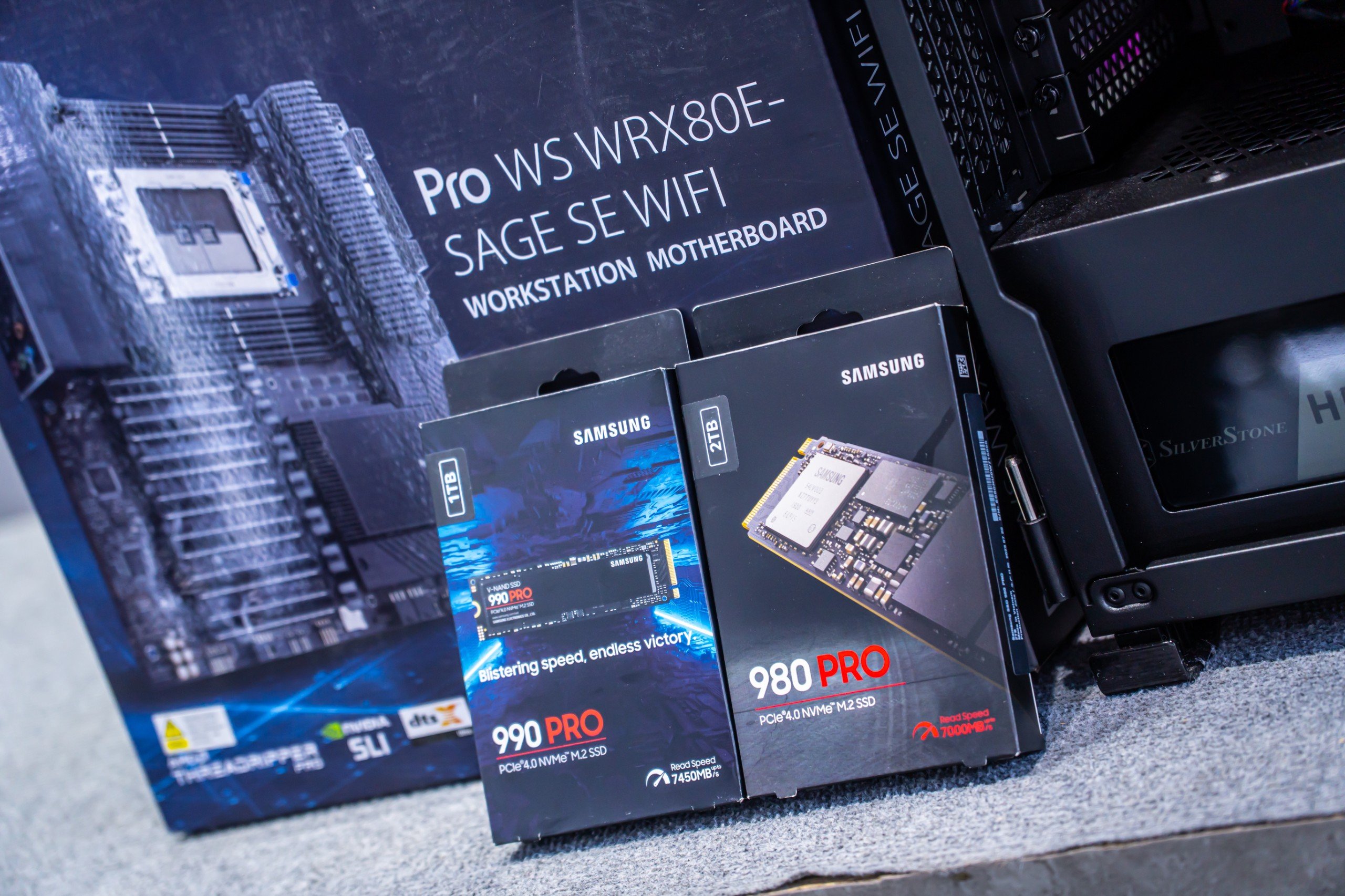 Pro WS WRX80E-SAGE SE WIFI bao gồm ba khe cắm M.2 và hai khe cắm U.2 được kết nối với băng thông PCIe 4.0 x4. Những người sáng tạo làm việc với các tệp video lớn có thể RAID cùng nhau nhiều thiết bị NVMe để có băng thông I / O lớn và phát lại liền mạch trong các khoang chỉnh sửa của họ. Ba khe cắm này nằm dưới bộ tản nhiệt chuyên dụng để ngăn SSD điều chỉnh khi tải nặng.