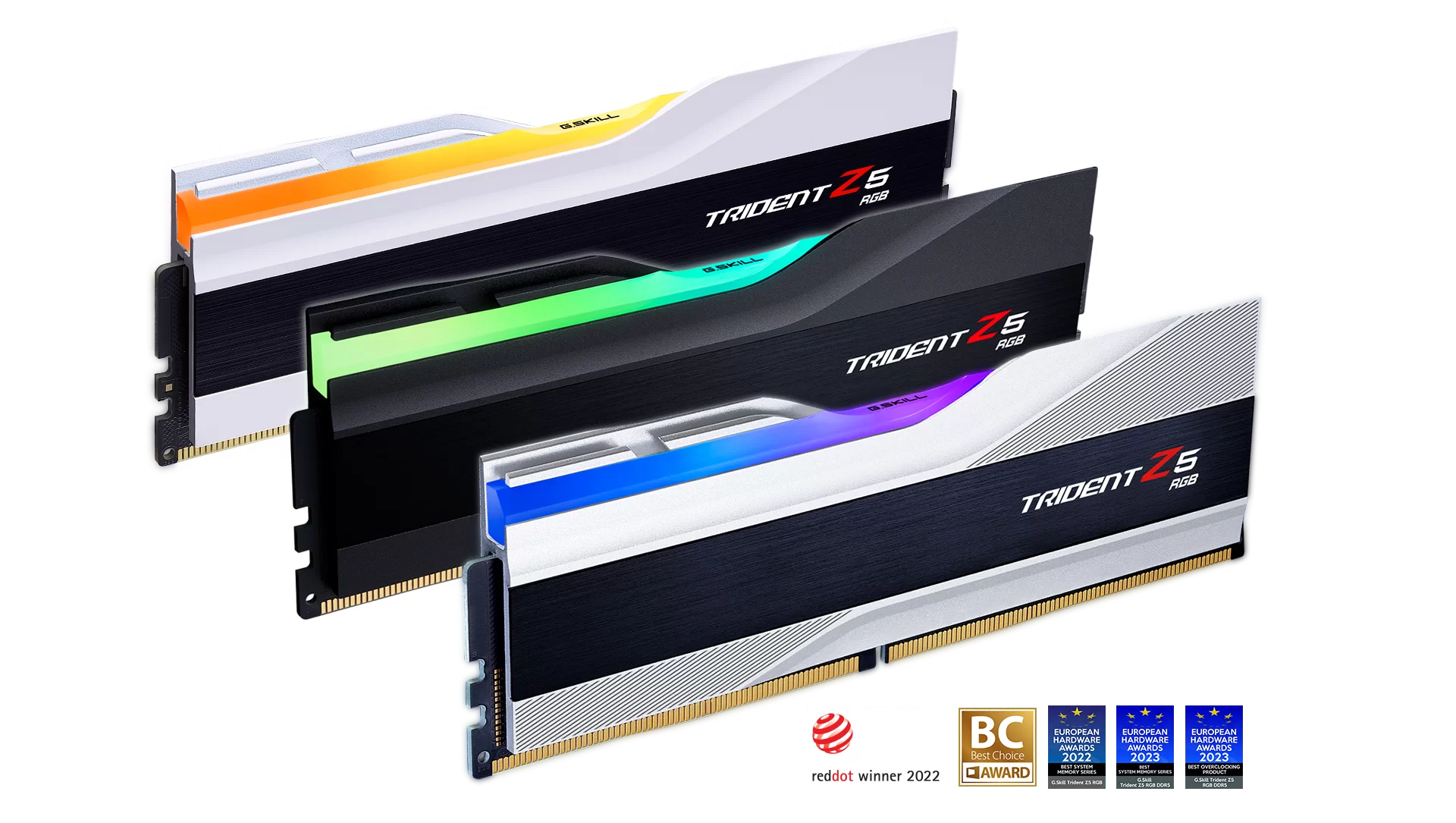 Gia đình Trident Z5 kết hợp các yếu tố thiết kế siêu xe vào bộ tản nhiệt Trident mang tính biểu tượng, tạo ra kiểu dáng đẹp và tương lai. Nổi bật với dải nhôm chải màu đen được lồng vào thân màu bạc kim loại, đen mờ hoặc trắng mờ và phía trên có thanh đèn RGB mờ được tối ưu hóa để mang lại ánh sáng mượt mà, Trident Z5 RGB lý tưởng cho nhiều chủ đề xây dựng PC khác nhau.