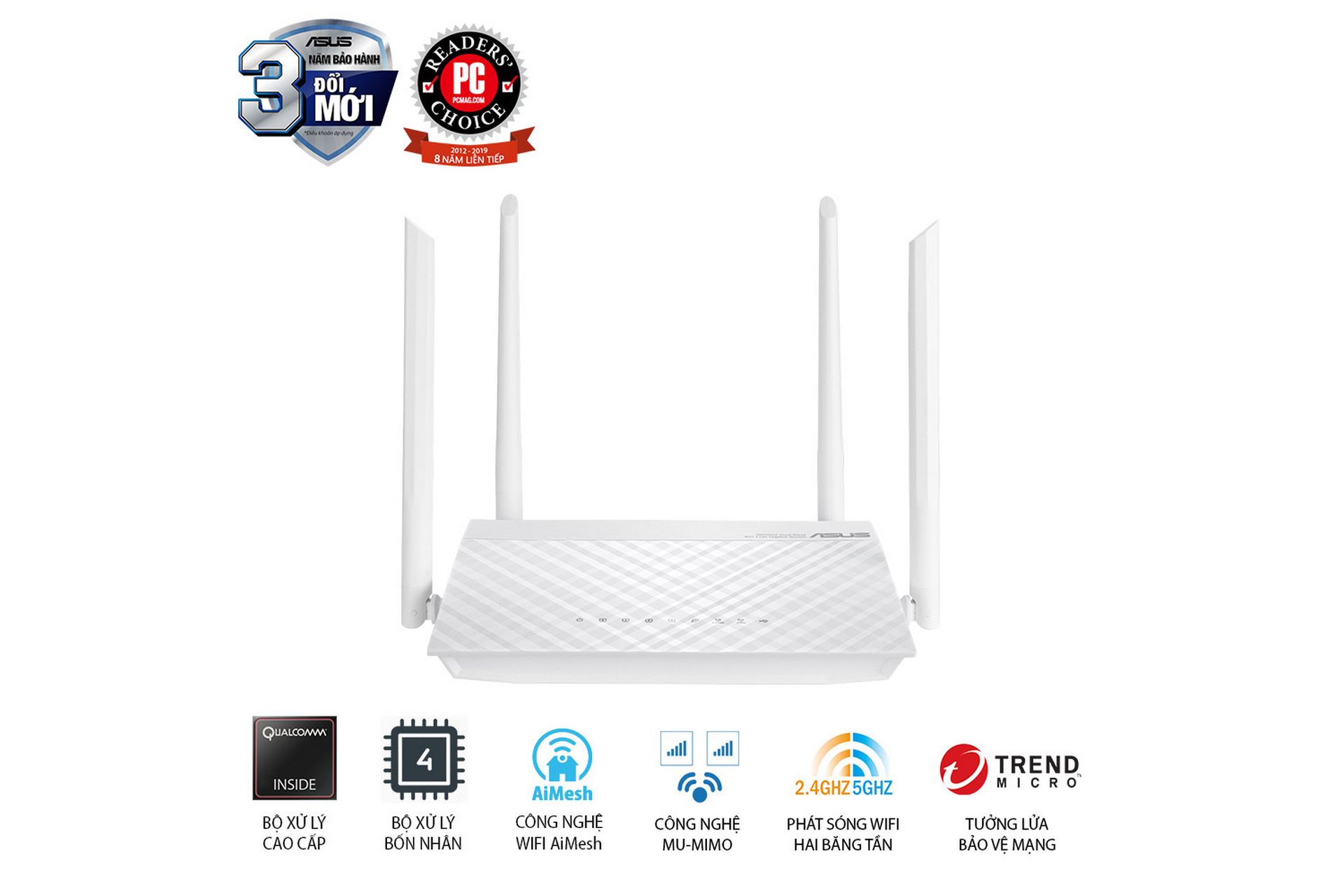 Router Wifi ASUS RT-AC59U V2 White là bộ định tuyến băng tần kép AC1500 với MU-MIMO, AiMesh cho hệ thống WiFi mở rộng, tính năng Kiểm soát của cha mẹ để truyền phát video 4K mượt mà từ Youtube và Netflix.