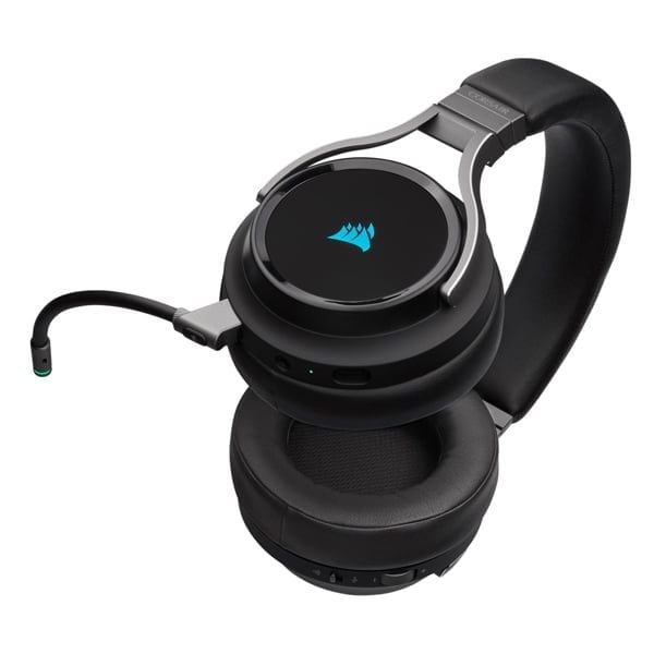 Tai nghe Corsair Virtuoso RGB Wireless Carbon với chất liệu nhôm gia công cùng với kết cấu gọn nhẹ mang lại độ bền cao và sự thoái mái tối đa cho người dùng