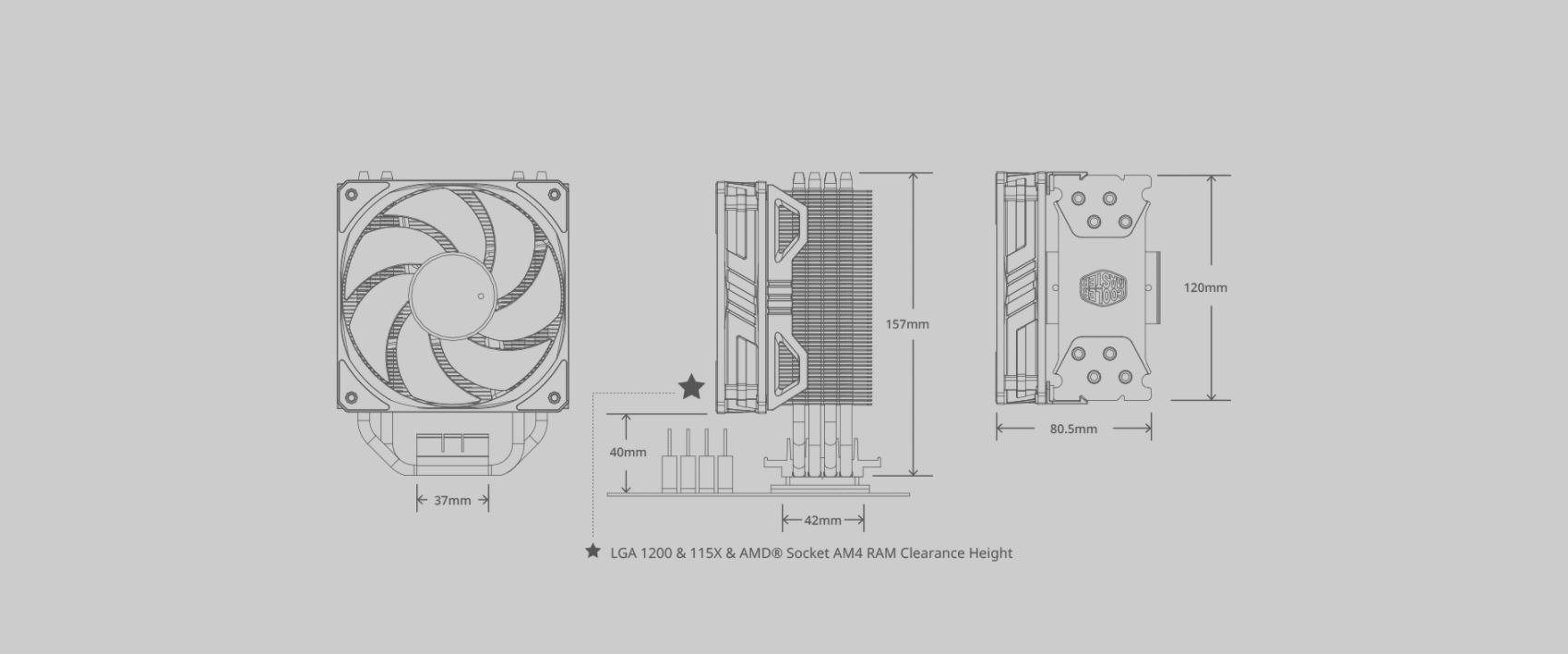 | Ghi chú | AM5 and LGA 1700 mounting kits are included from New Package Design. You may obtain the required mounting kits for products with older package design through the CM store, regional resellers or distributors. Older CPU sockets (LGA 2066, LGA2011-v3, LGA2011, LGA1366, AM3+, AM3, AM2+, AM2, FM2+, FM2, FM1) will not be supported anymore from New Package Design. |
