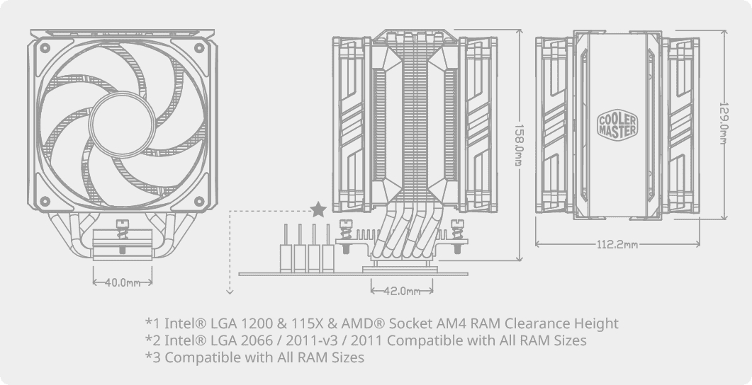 Tản Nhiệt Khí Cooler Master MasterAir MA612 Stealth ARGB hỗ trợ đầy đủ các loại socket phổ biến hiện nay trên thị trường như: