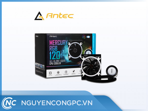 Tản nhiệt nước AIO Antec MERCURY 120 có Bơm cường lực có khả năng chuyển được nước cao tới 2.3m. Đèn LED thay đổi theo nhiệt độ hệ thống ≤35℃ Blue; 36-40℃ Green; ≧41℃ Red. Quạt tản nhiệt PWM hiệu quả cao. Trục sứ + ổ trục graphite tăng tuổi thọ hoạt động của dòng Mercury. Ống phủ Teflon để tăng độ bền...