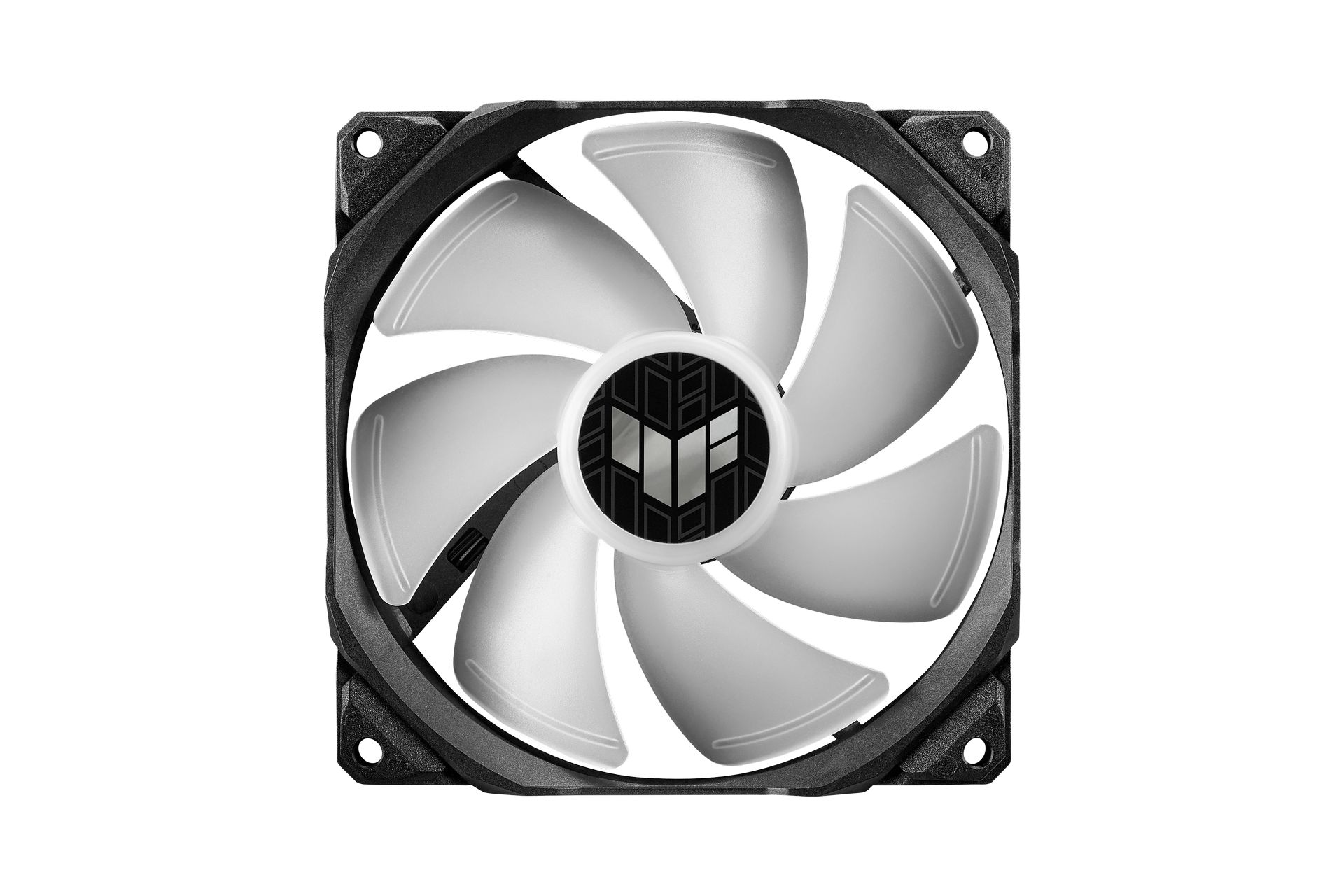 - Quạt tản nhiệt TUF Gaming với thiết kế dạng lưỡi có rãnh để tối ưu hóa luồng không khí và giảm tiếng ồn