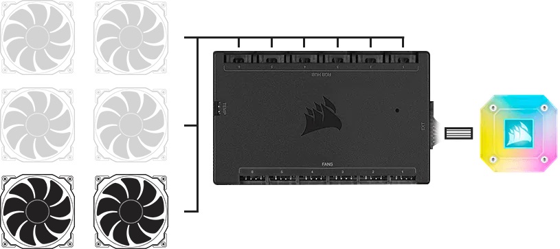 Khai thác sức mạnh của iCUE với iCUE Commander CORE đi kèm để điều khiển tốc độ và ánh sáng RGB cho các quạt đi kèm, với khả năng điều khiển các quạt bổ sung, nó có thể hỗ trợ lên đến tổng cộng 6 quạt tản nhiệt cùng lúc.