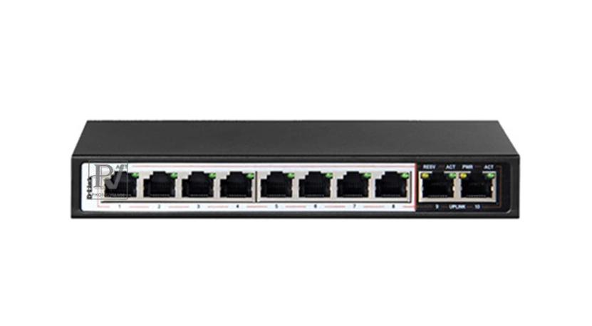 - Switch 6 cổng 10/100M với 8 cổng PoE, 2 cổng uplink.