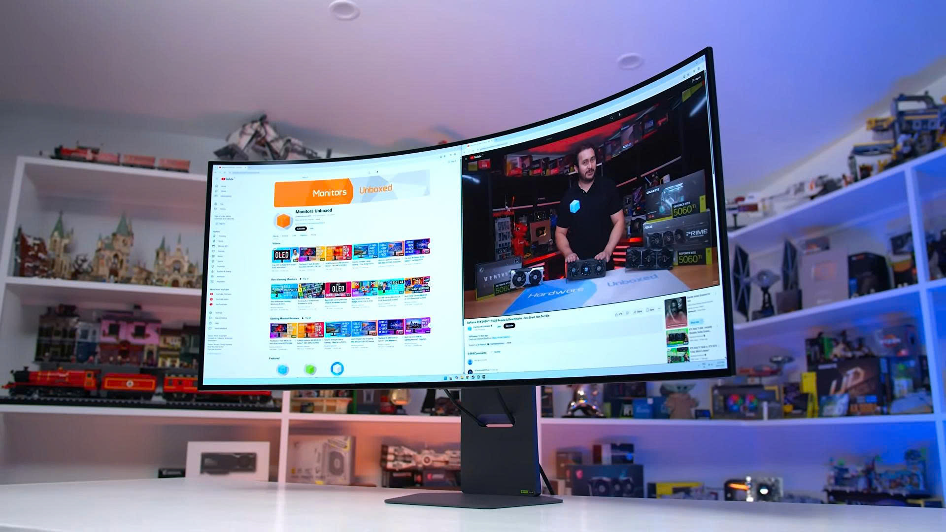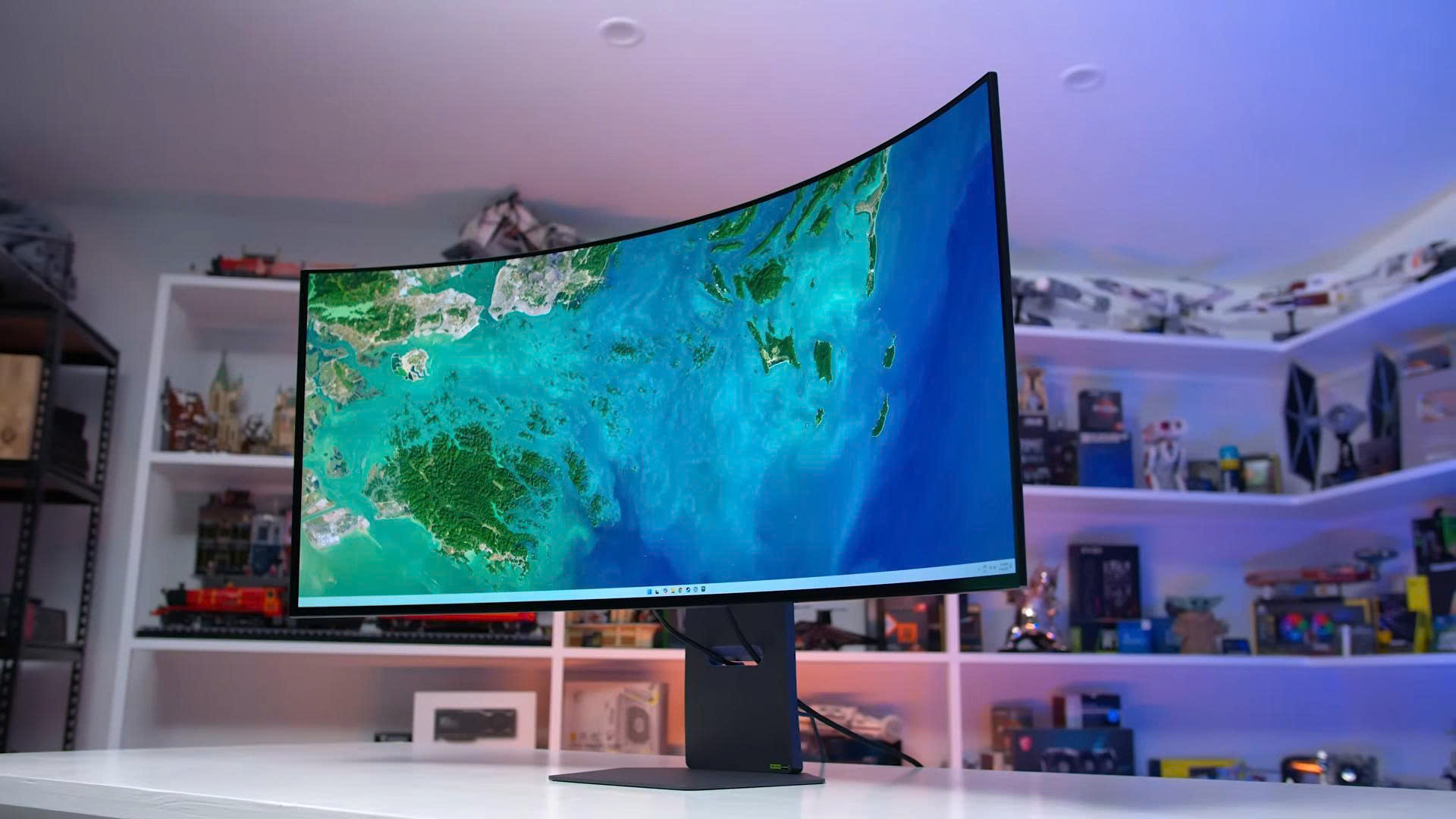 Sử dụng tấm nền VA với tần số quét 240Hz và độ cong 1000R, chiếc màn hình này lấp đầy hoàn toàn tầm nhìn ngoại vi, mang lại trải nghiệm mô phỏng lái xe (sim racing) hoặc bay lượn chân thực đến kinh ngạc. Độ sáng cao và chứng nhận VESA DisplayHDR™ 1000 giúp hình ảnh rực rỡ và có chiều sâu vượt trội. Tính năng Picture-by-Picture (PBP) cũng cho phép hiển thị từ hai nguồn phát cùng lúc, biến nó thành trạm trung tâm quyền lực cho cả công việc và giải trí.