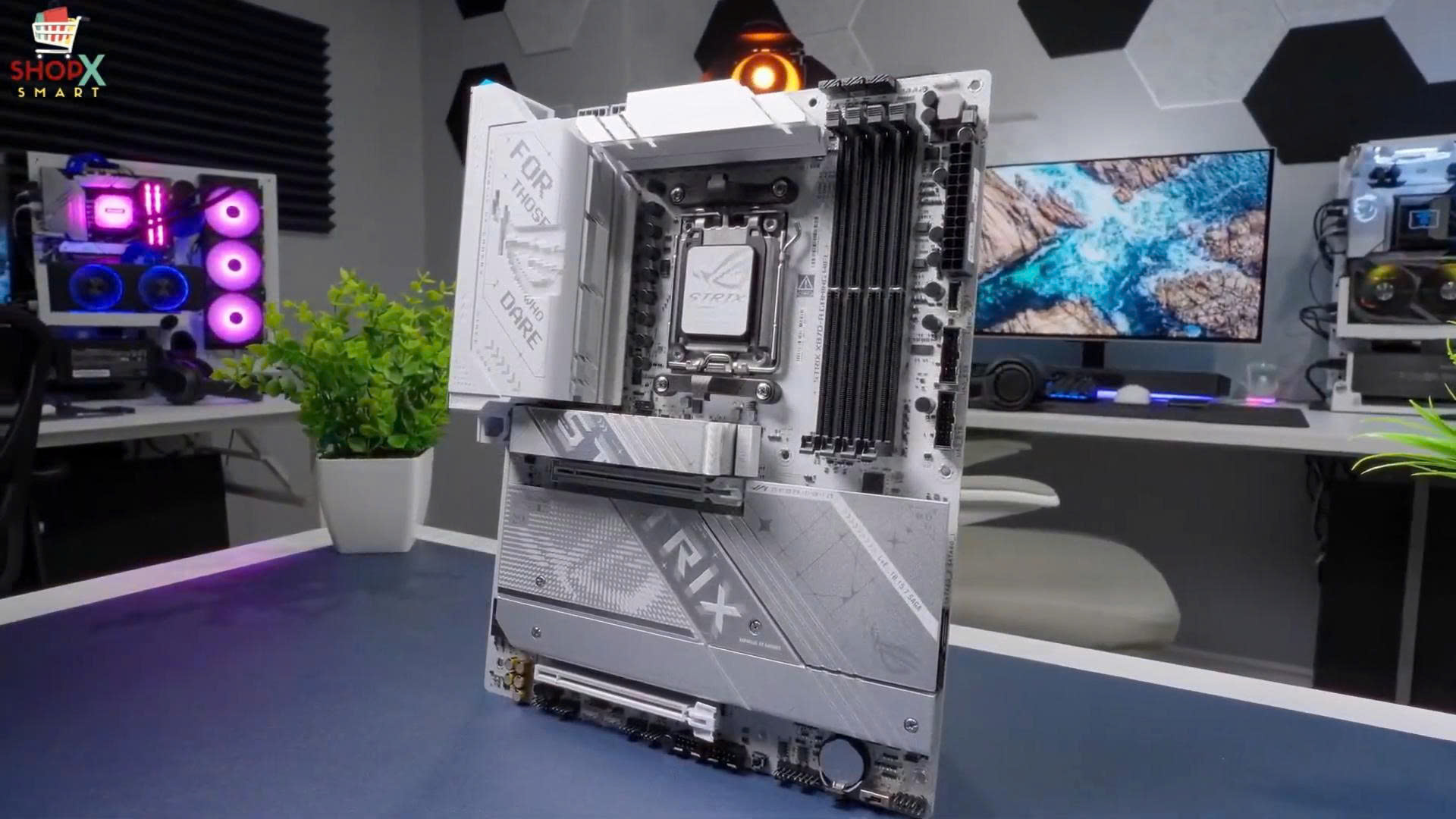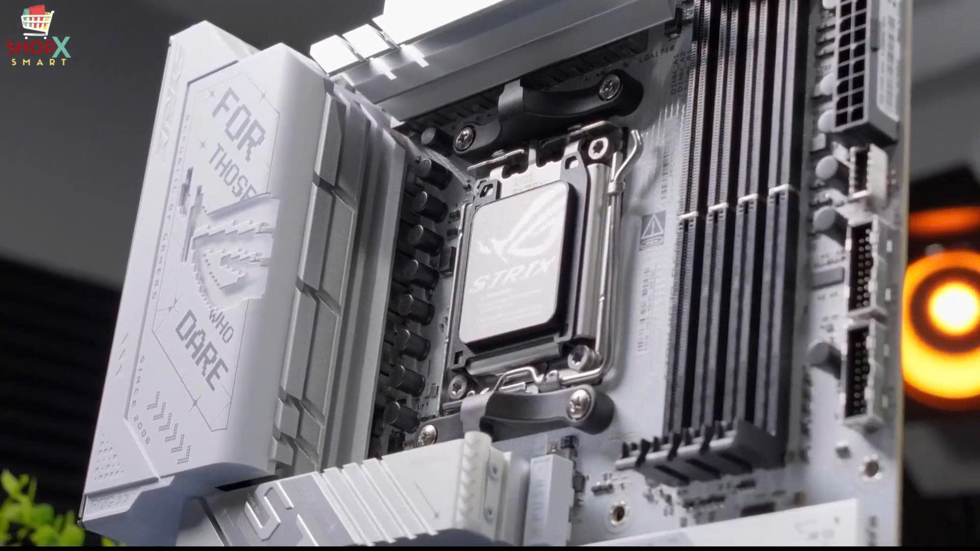 Mở đầu cho danh sách các mẫu mainboard X870 đáng mua nhất 2026 là ASUS ROG Strix X870-A Gaming WiFi, một lựa chọn lý tưởng cho những ai yêu thích phong cách tối giản và sang trọng với thiết kế tông màu trắng. Mainboard này có kích thước ATX - chuẩn lớn nhất, đủ không gian để gắn và hỗ trợ các linh kiện cao cấp.
