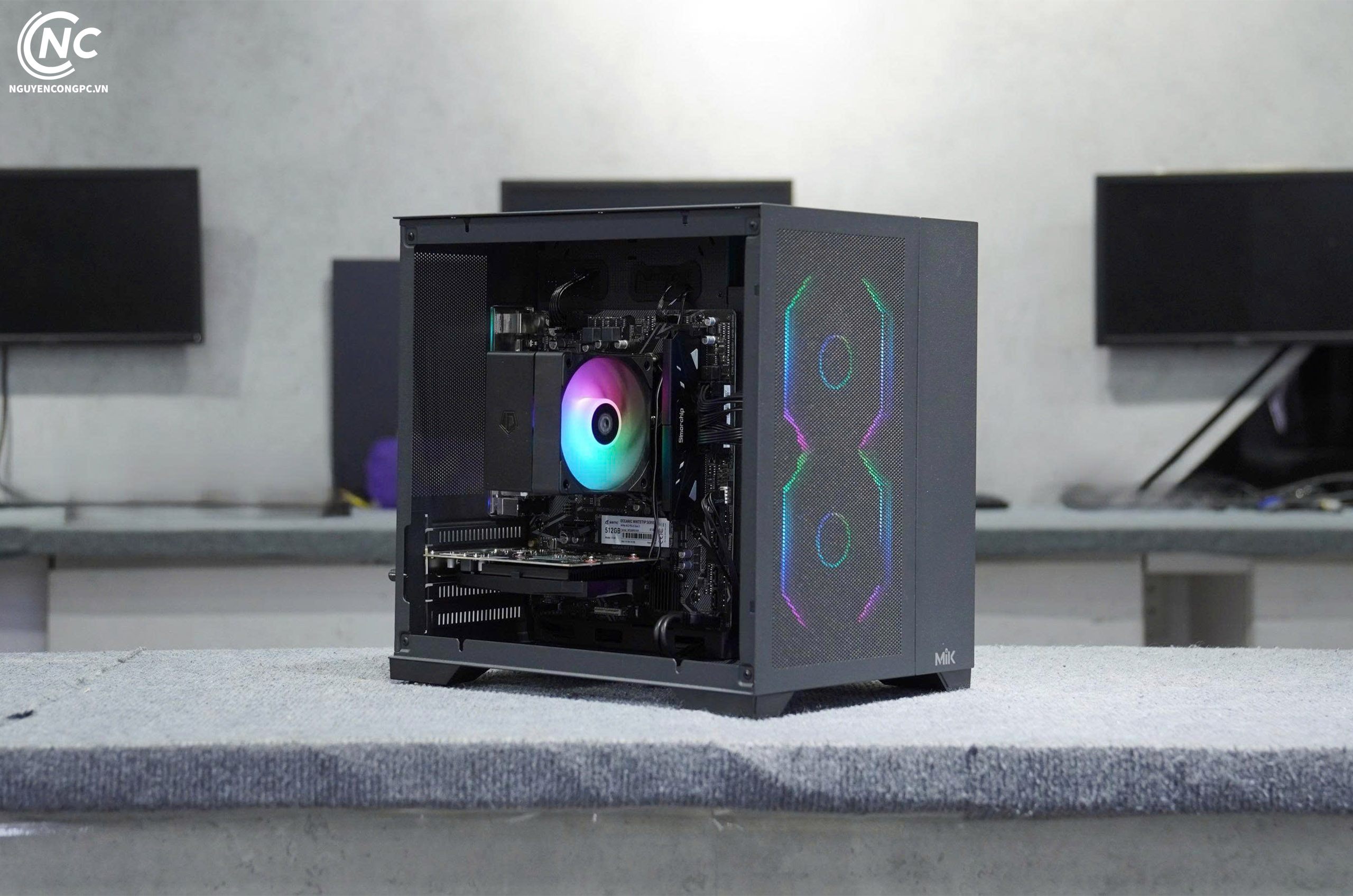 Bộ PC Gaming này gây ấn tượng mạnh mẽ nhờ ngoại hình cá tính với vỏ case MIK MORAX 3FA trang bị sẵn hệ thống 3 fan ARGB rực rỡ, kết hợp hoàn hảo cùng sức mạnh "quốc dân" của vi xử lý Intel Core i5-12400F 6 nhân 12 luồng.