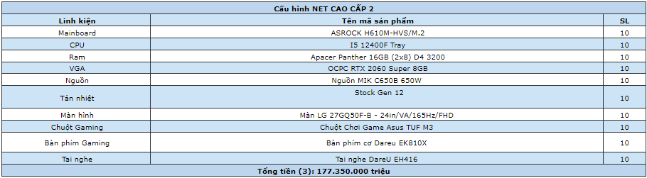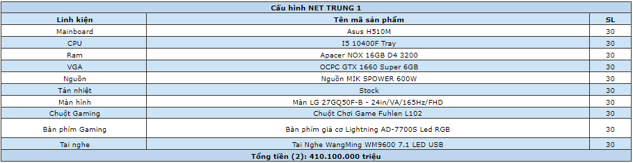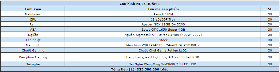 Dưới đây, là Option gói lắp đặt phòng net 100 máy mà Nguyễn Công xin giới thiệu tới các quý khách hàng:
