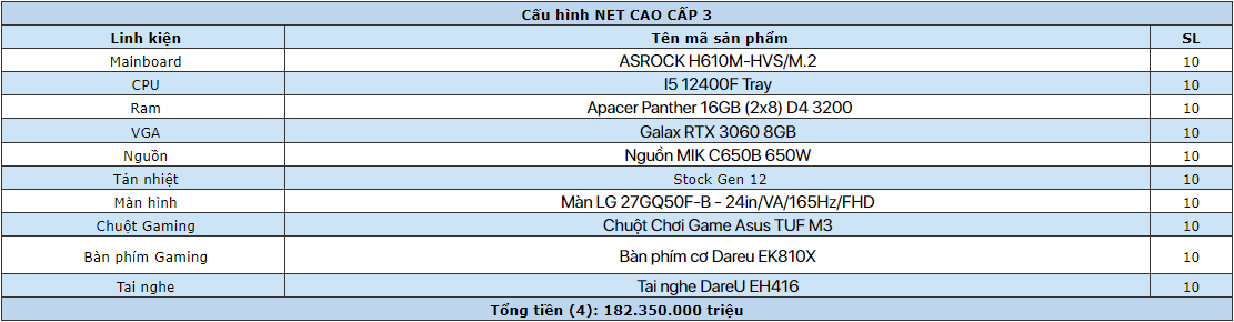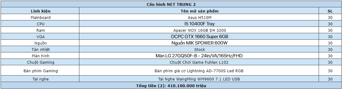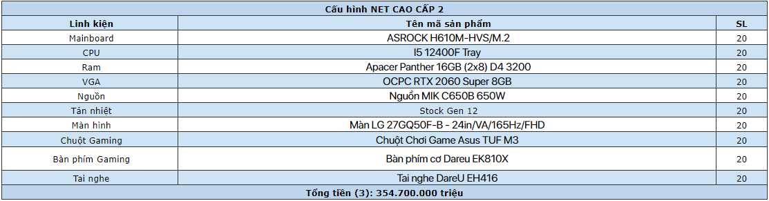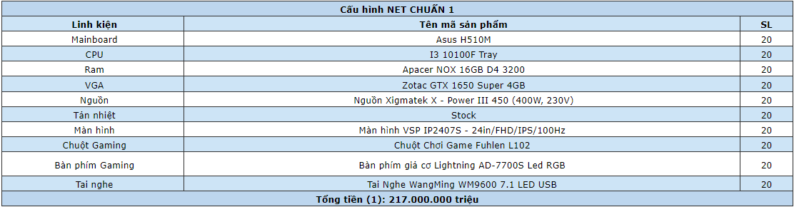 Dưới đây, là Option gói lắp đặt phòng net 100 máy mà Nguyễn Công xin giới thiệu tới các quý khách hàng: