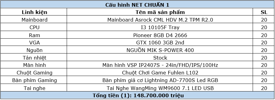 Dưới đây, là Option gói lắp đặt phòng net 20 máy - basic mà Nguyễn Công xin giới thiệu tới các quý khách hàng: