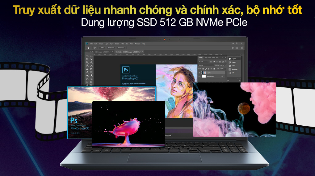 Mình và bạn, chúng ta vừa cùng đi liệt kê những “món đồ” mà “người bạn đồng hành” của bạn có, cũng toàn đồ chất lượng và cũng xịn xò ha… Tuy nhiên thì… Bạn vẫn sẽ thiếu một thứ để có thể cho tất cả những món đồ này vào và cùng dùng chung kết hợp tại một thời điểm… Vâng, đó chính là chiếc bao hoặc chiếc túi, và đây, chiếc túi thần kỳ của bạn chính là ổ cứng SSD 512 GB NVMe Pcle, đã 512GB rồi lại còn có chuẩn Pcle, cứu lưu đi vì Vivobook Pro 15 cho phép và cứ save đi vì nhà mình có gì ngoài một chiếc ổ cứng có sẵn nhiều nhiều dung lượng đâu mà phải ngại ngùng nhỉ.