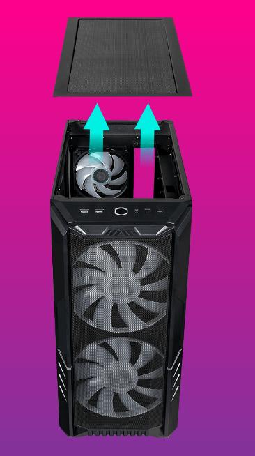 Bảng điều khiển trên cùng có thể tháo rời hoàn toàn để cải thiện khả năng tiếp cận các thành phần trong quá trình lắp ráp. Tính dễ sử dụng cũng tạo điều kiện thuận lợi cho việc gắn các giải pháp làm mát như quạt và bộ tản nhiệt.
