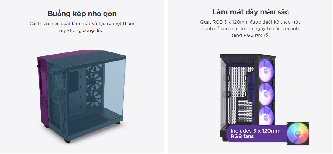 | Hỗ trợ | Phía trước bên phải : 3 x 120 mm (bao gồm 3 x F120 RGB Core Trên : 3 x 120 mm / 2 x 140 mm Đáy : 2x140mm Phía sau : 1x120mm Bộ lọc : Lưới hiệu suất cao |