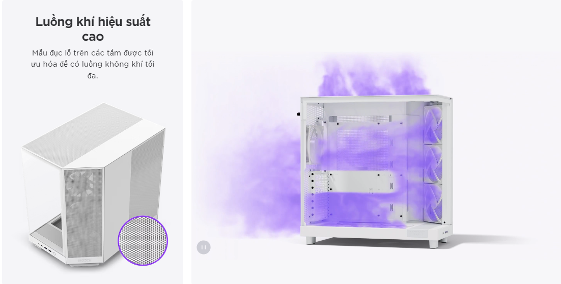 | Hỗ trợ tản nhiệt | Trên cùng : Lên tới 360 mm Phía sau : Lên tới 120 mm |