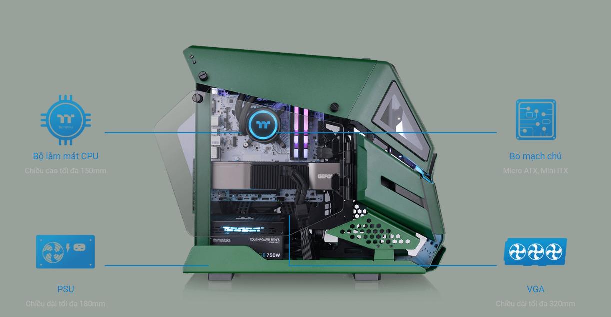 | HỖ TRỢ RADIATOR tản nhiệt nước | Mặt trước: 1 x 240mm hoặc 1 x 120mm 1 x 280mm hoặc 1 x 140mm Chiều cao tối đa của bộ làm mát CPU: 150mm Chiều dài tối đa của VGA: 320mm Chiều dài tối đa của PSU: 180mm Giới hạn độ dày 3.5 ”của HDD: 22mm |