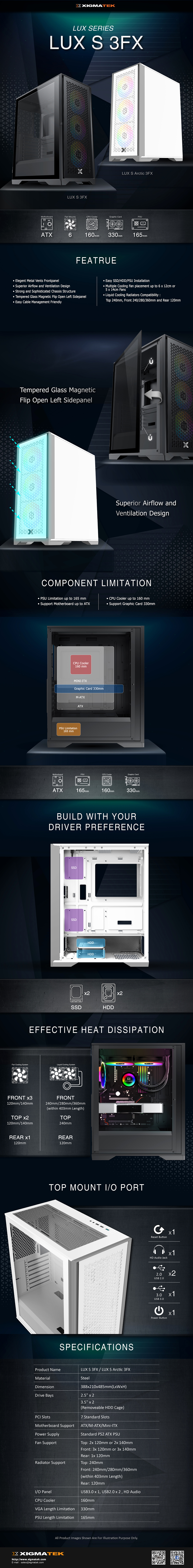 VỎ CASE XIGMATEK LUX S ARTIC 3FX - PREMIUM GAMING ATX, KÈM 03 FAN |