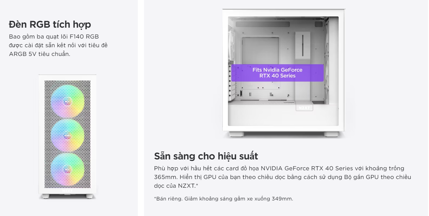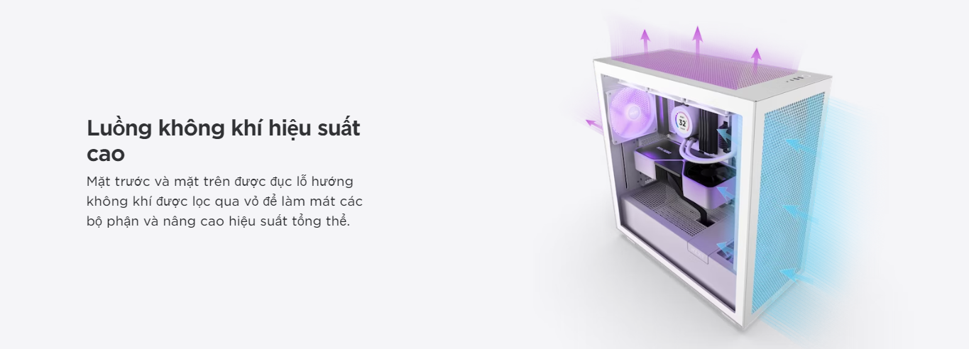 H7 Flow RGB sẵn sàng giữ cho các linh kiện cao cấp luôn mát mẻ. Với ba quạt Lõi RGB 140mm được cài đặt sẵn và một quạt Luồng không khí yên tĩnh F120Q, chiếc vỏ này đã sẵn sàng để bắt đầu tình yêu RGB của bạn theo một cách quan trọng.